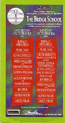 wow - amazing Bridge School benefit concert, we were on the lawn saturday night, and there were three generations around us, including my 16 y/o musician daughter who loved, loved the concert. Thank you so much Neil Young for your artistry and mission, for the new (modest mouse, grizzly bear), the fun (Billy Idol), and the gold (Buffalo Springfield, Pearl Jam, Kristofferson, Jackson Browne, and everyone else.....- and for giving such meaning to attending a live music performance. All the best to the Bridge School for year 2010-2011!