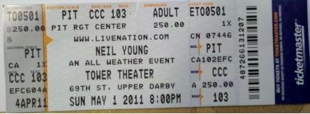 A week or so ago, we were very fortunate to be able to see our 4th, 5th, 6th, and 7th shows of Neil Young's Twisted Road tour -- both nights at the Hippodrome in Baltimore (April 27 & 28, 2011) and both nights at the Tower Theatre in Upper Darby, PA (April 30 & May 1, 2011). (Last year, we caught the Boston, Washington and Milwaukee concerts.)