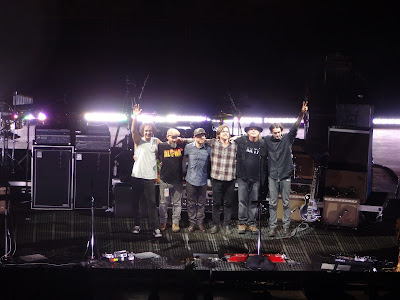 A few more random notes. Promise of the Real seems like a great band for Neil and it's a real joy to watch the craft being handed to the next generation. Lots of fire and energy on the stage. The jams on "Down by the River" and "Love and Only Love" were smokin'. And definitely some sound flavors with conga drums by Tato Melgar. We can't say enough good things about Micah's musical diversity on a variety of guitars and the piano. And Micah totally shreds when jams with a violin bow on several of the songs. We -- and everyone we spoke with -- found the vocal levels of Promise of the Real to be very low, especially Lukas' which is a shame since he has such a great distinguished voice.